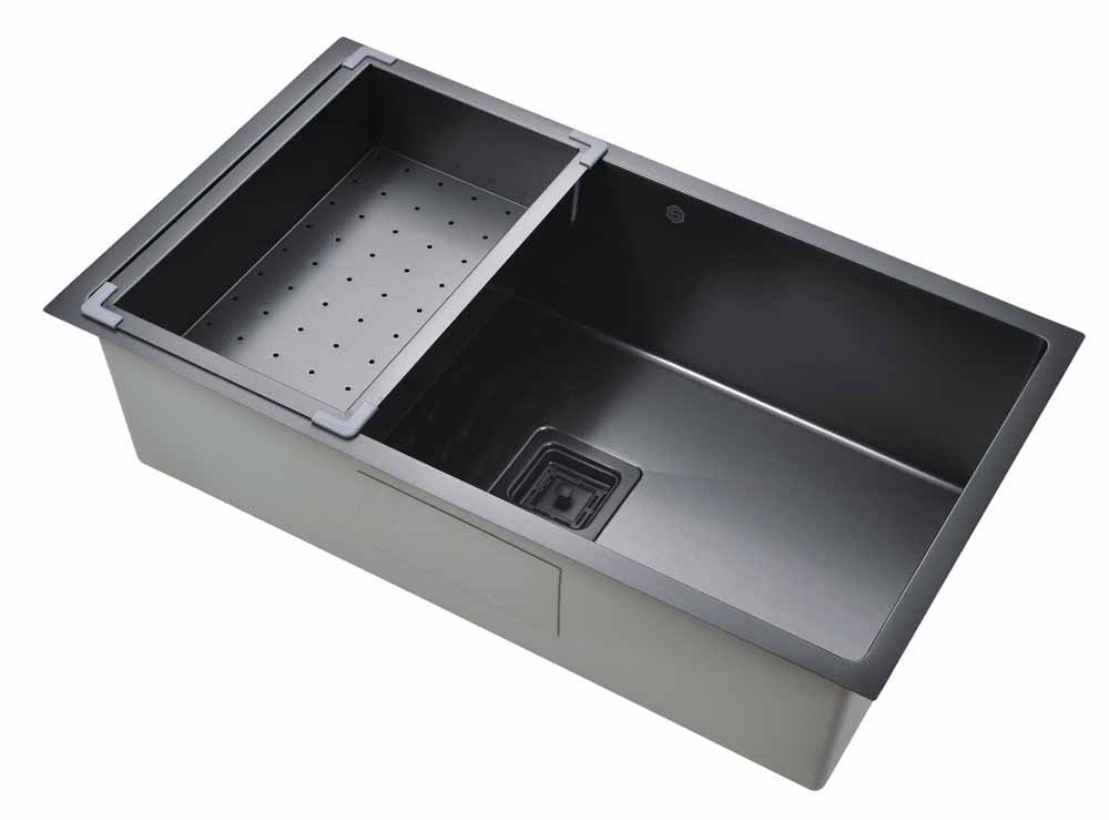 Black Stainless Steel 3/4 Radius Single Bowl Square Drain